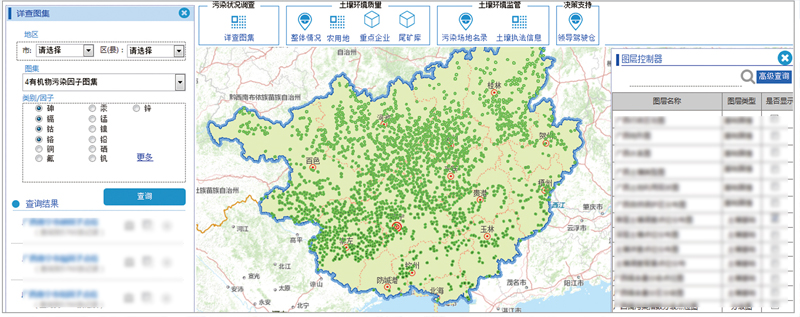 領(lǐng)導(dǎo)駕駛艙:通過該功能可以掌握本行政區(qū)土壤污染防治目標(biāo)、重點(diǎn)行業(yè)重點(diǎn)重金屬排放下降目標(biāo),以及土壤污染狀況、污染防治項(xiàng)目等全程信息。